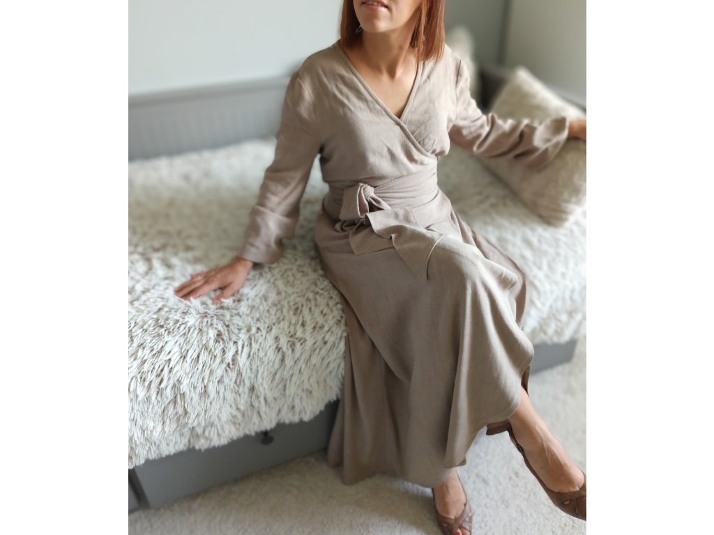 Dlouhé zavinovací šaty ze lnu-viskózy se širokým páskem