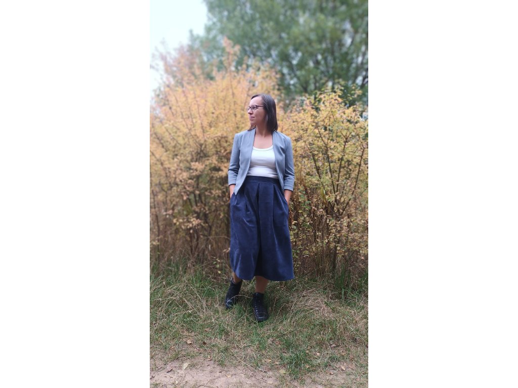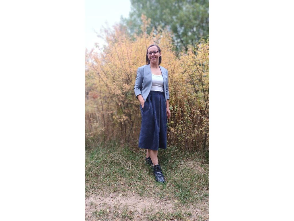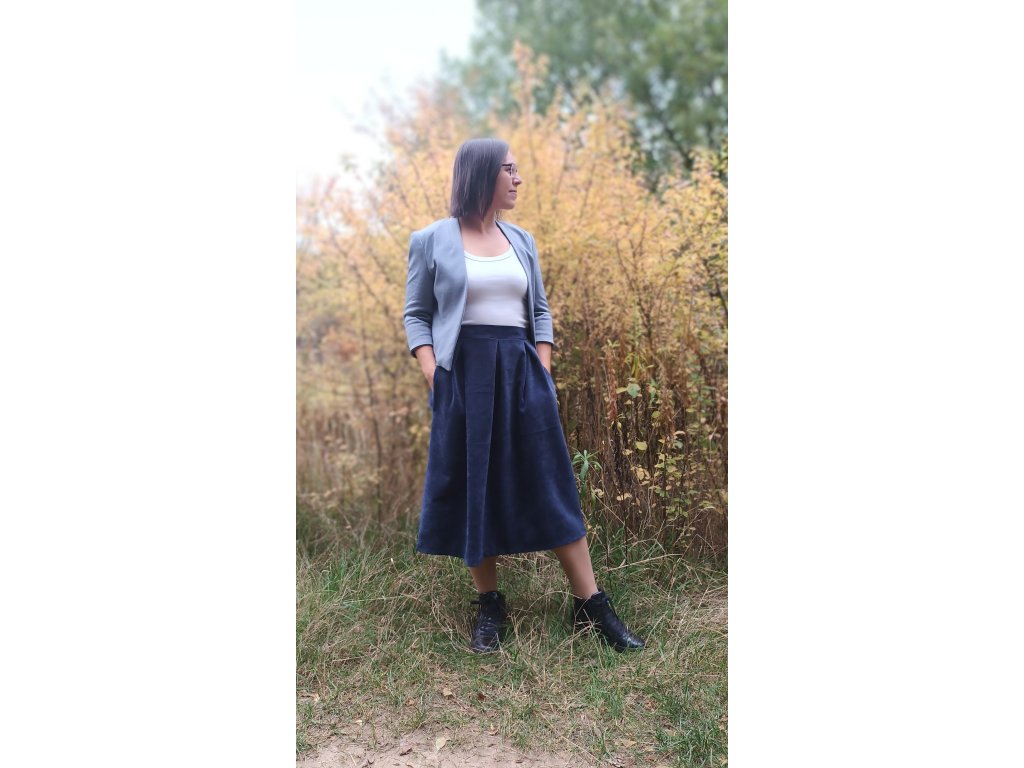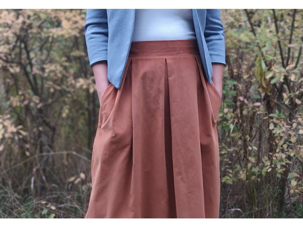 Krásná skládaná sukně z manšestru, což je pevnější a teplejší tkanina, příjemná na tělo, 100% bavlna. Vhodná především na pro chladnější období.